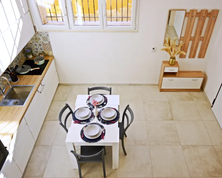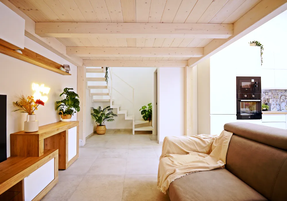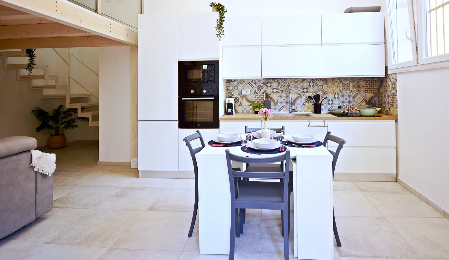 - Cucina attrezzata, piastre a induzione, forno elettrico, forno a micro onde, divano letto.