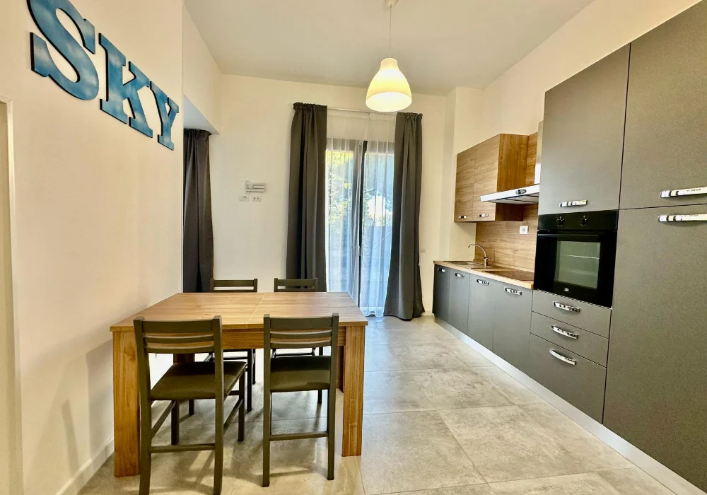 Sky è un bilocale composto da ampio soggiorno con cucina a vista, accesso ad ampia terrazza, disimpegno, camera matrimoniale e bagno.