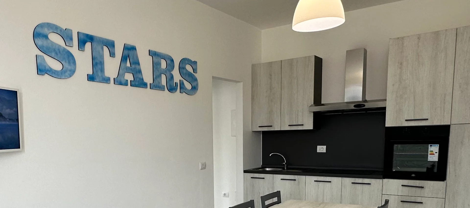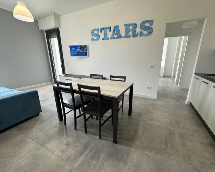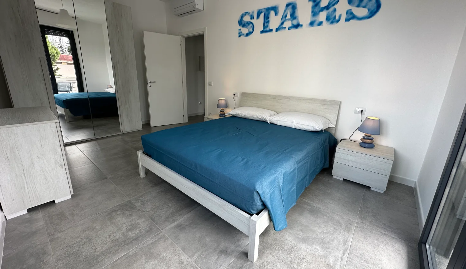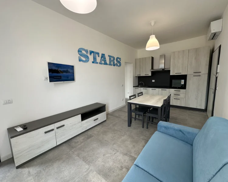 Stars è un bilocale composto da ampio soggiorno con cucina a vista, accesso ad ampia terrazza, disimpegno, camera matrimoniale e bagno.